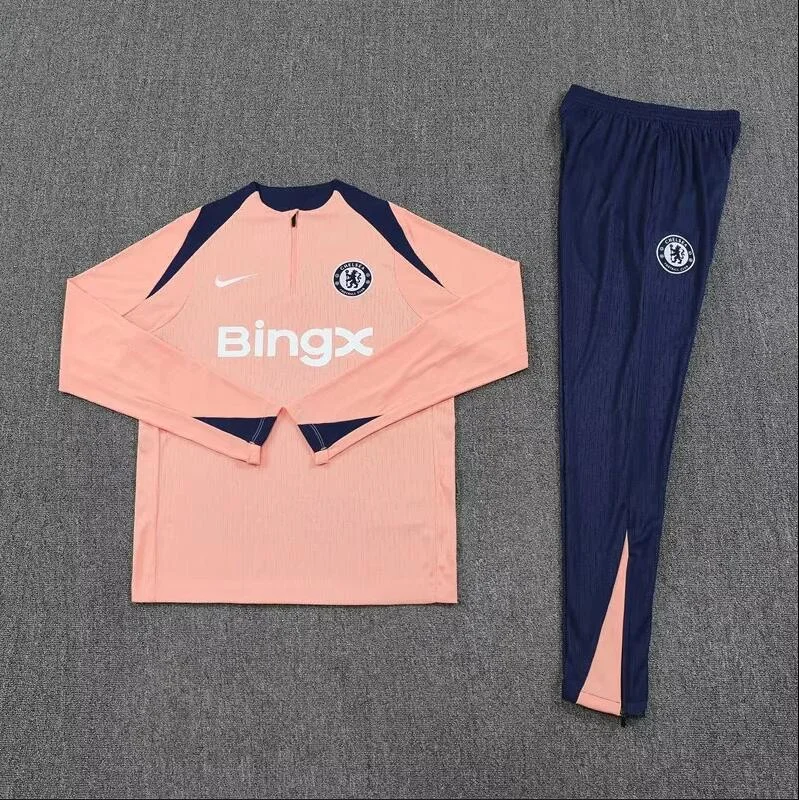 2025/2026 Chelsea Half-Pull Training Suit Pink Football Jersey Set 1:1 Thai Quality