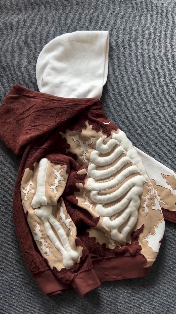 3D Color-Block Skull Hoodie