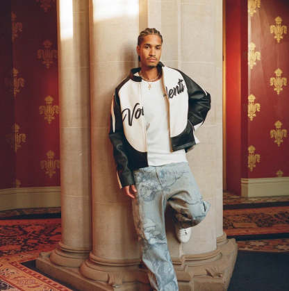 EMBROIDERED DV LOGO ON THE POCKETS, WITH EMBOSSED LEATHER ACCENTS AND AN ALL-OVER CUPID PRINT.