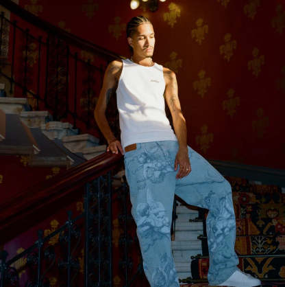 BECAUSE THESE JEANS ARE PRINTED, FREQUENT OR IMPROPER WASHING MAY CAUSE FADING. TO PRESERVE THEM, HAND WASH OR USE A COLD GENTLE CYCLE WITH MILD DETERGENT. WASH INSIDE OUT, DO NOT TUMBLE DRY, DO NOT BLEACH.