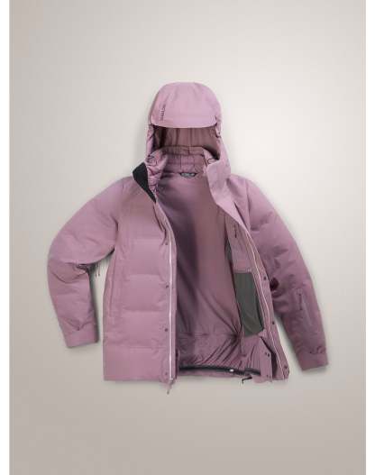 Fabric & Construction: Waterproof/breathable laminate shell fabric with taped seams for weather protection; strategically placed down and synthetic insulation ensure warmth in moisture-prone zones.
