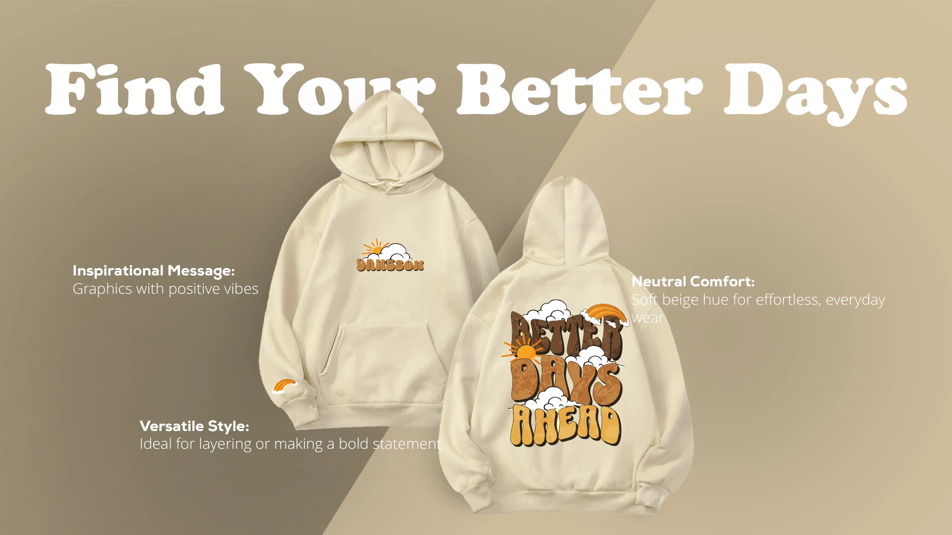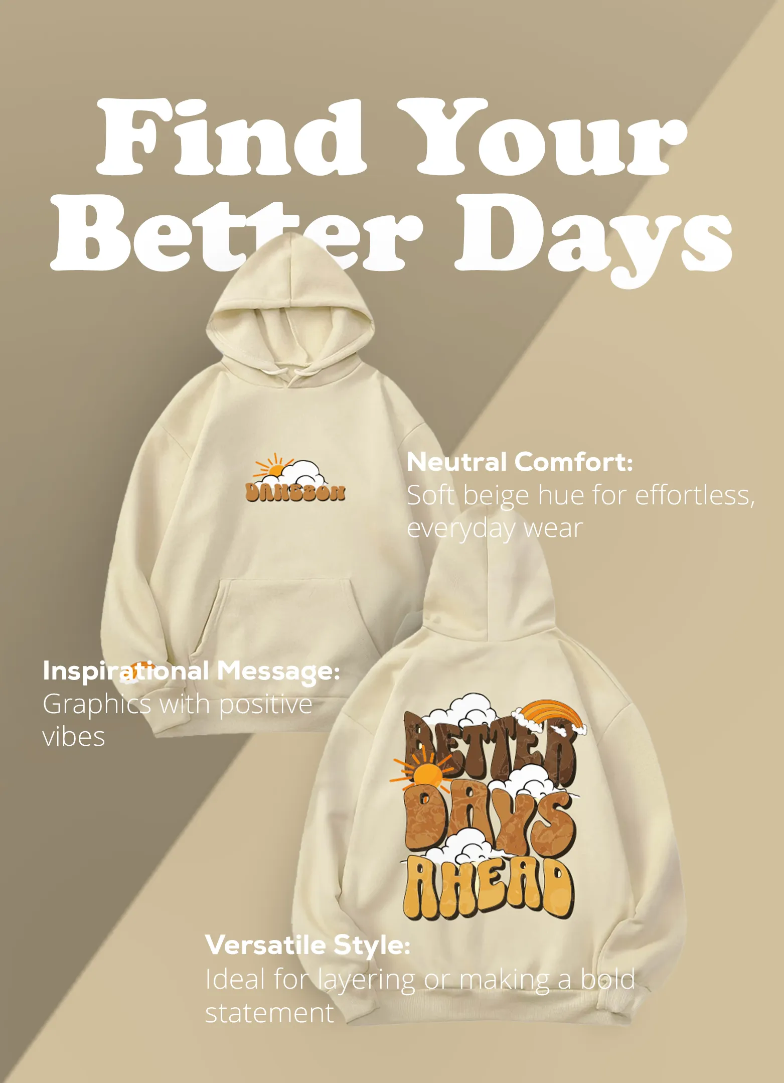 That back graphic is more than just words, it’s a statement. Every time you wear it, you carry a gentle reminder to look forward to brighter days. Isn’t it time your closet had a piece that feels as good as it inspires? So grab this Latest Danezon Better Days Ahead Unisex Hoodie In Cream now and step into the future with style