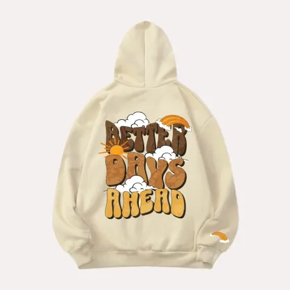 Graphic Vibes Better Days Ahead Unisex Beige Fleece Hoodie By Danezon