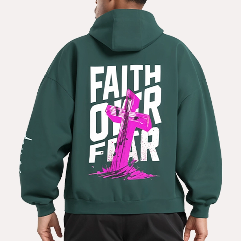 Graphic Vibes Faith Over Fear Unisex Green Fleece Hoodie By Danezon
