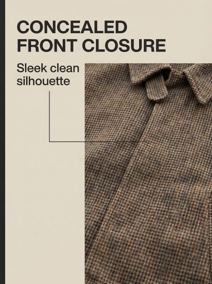 - Concealed front closure.