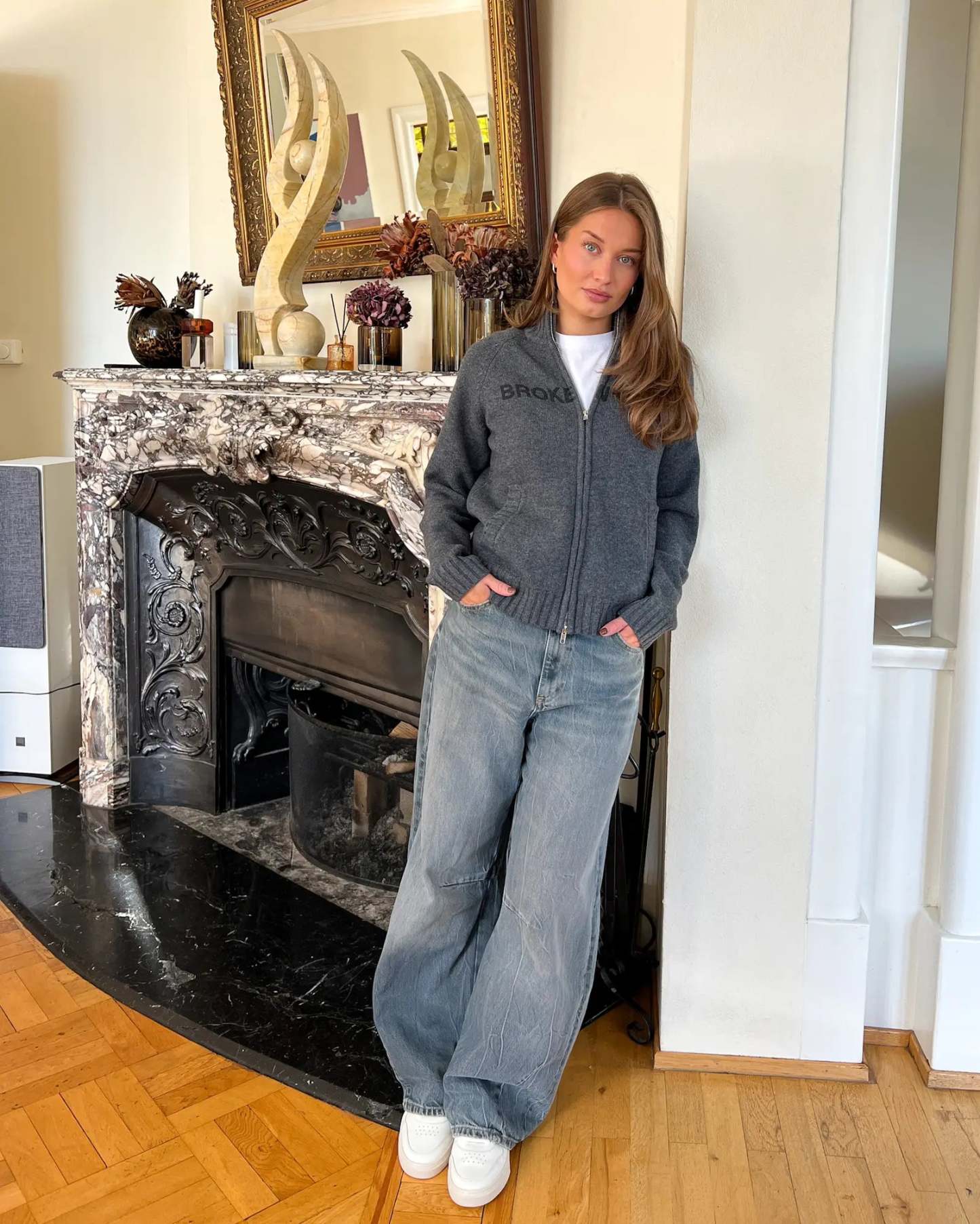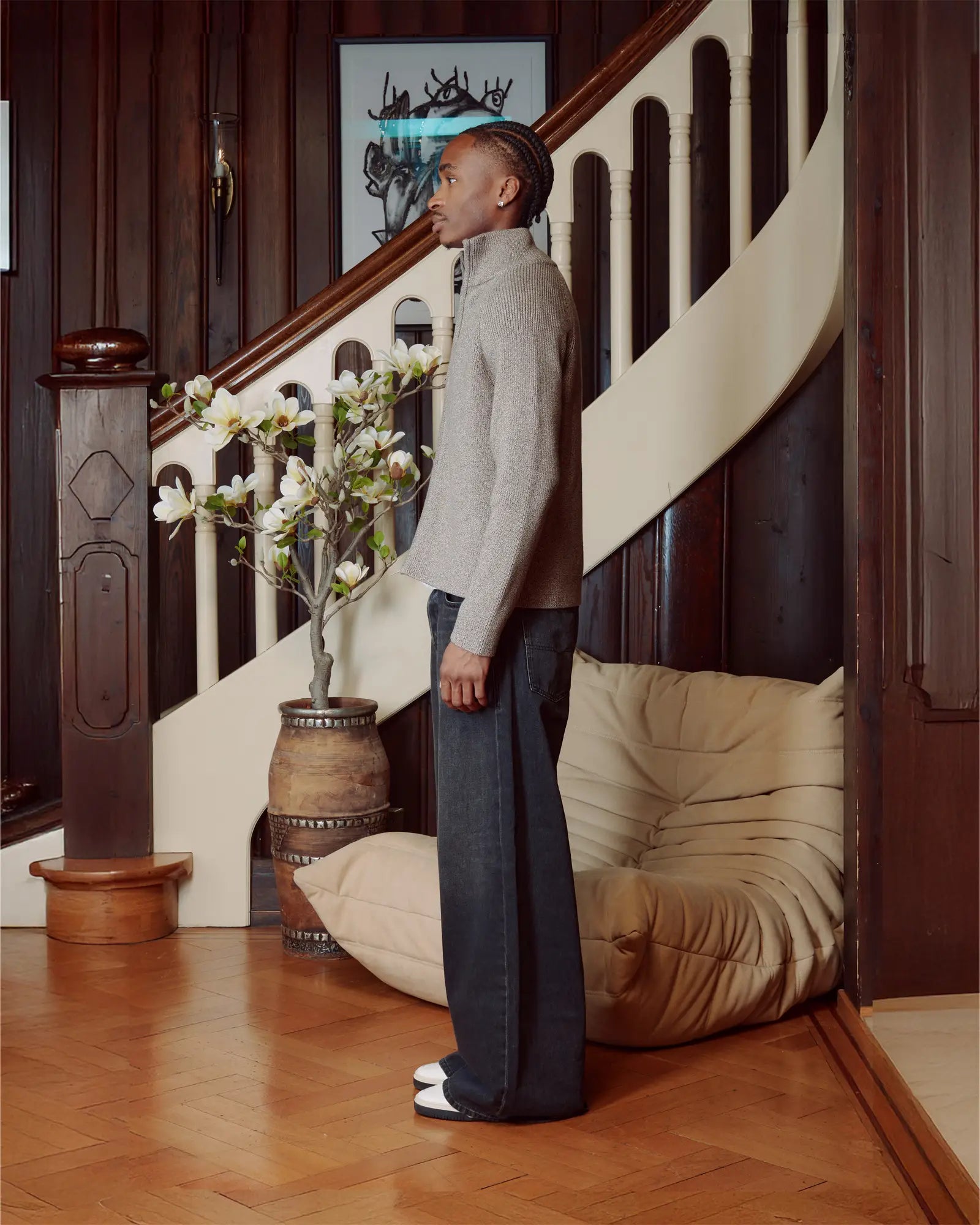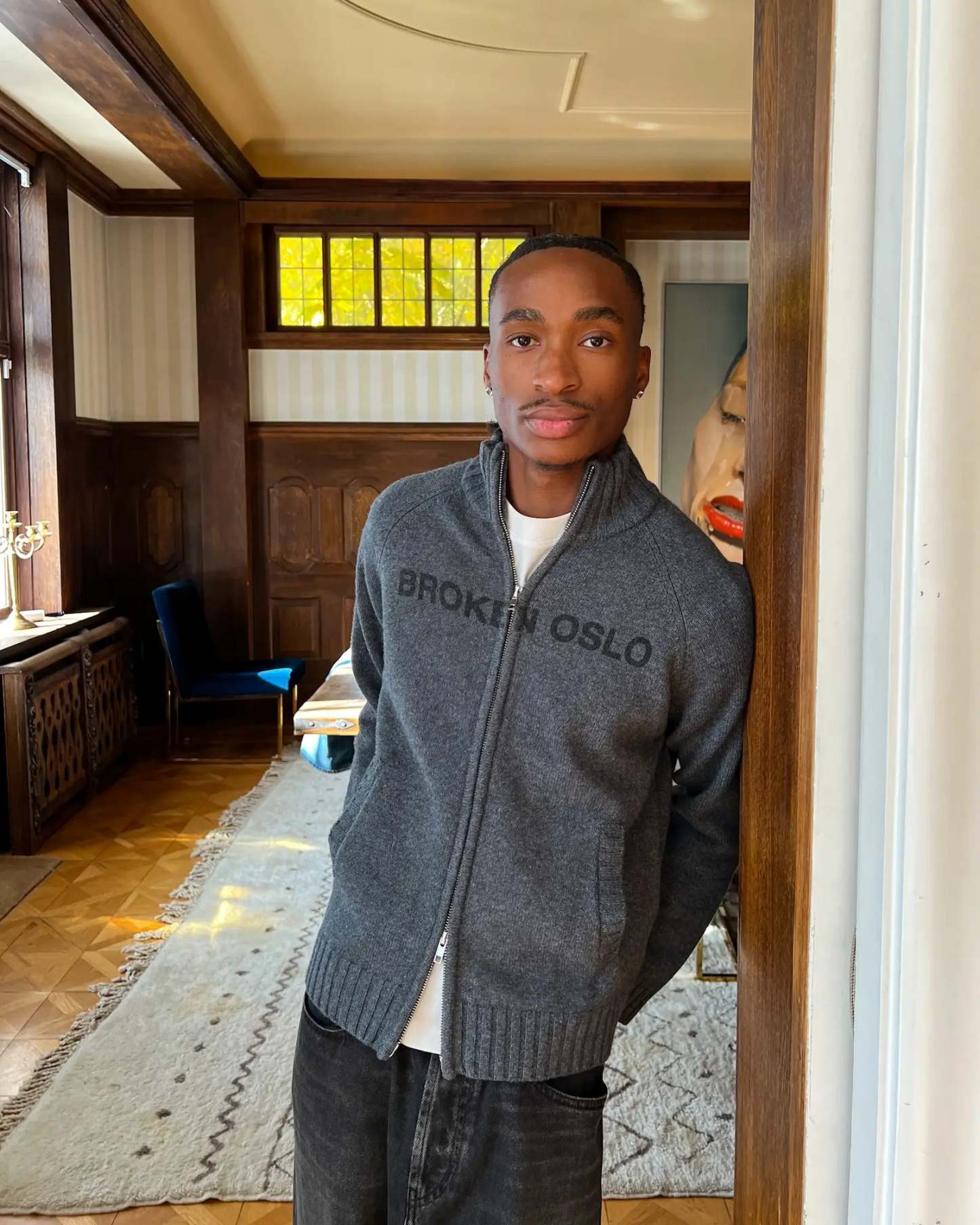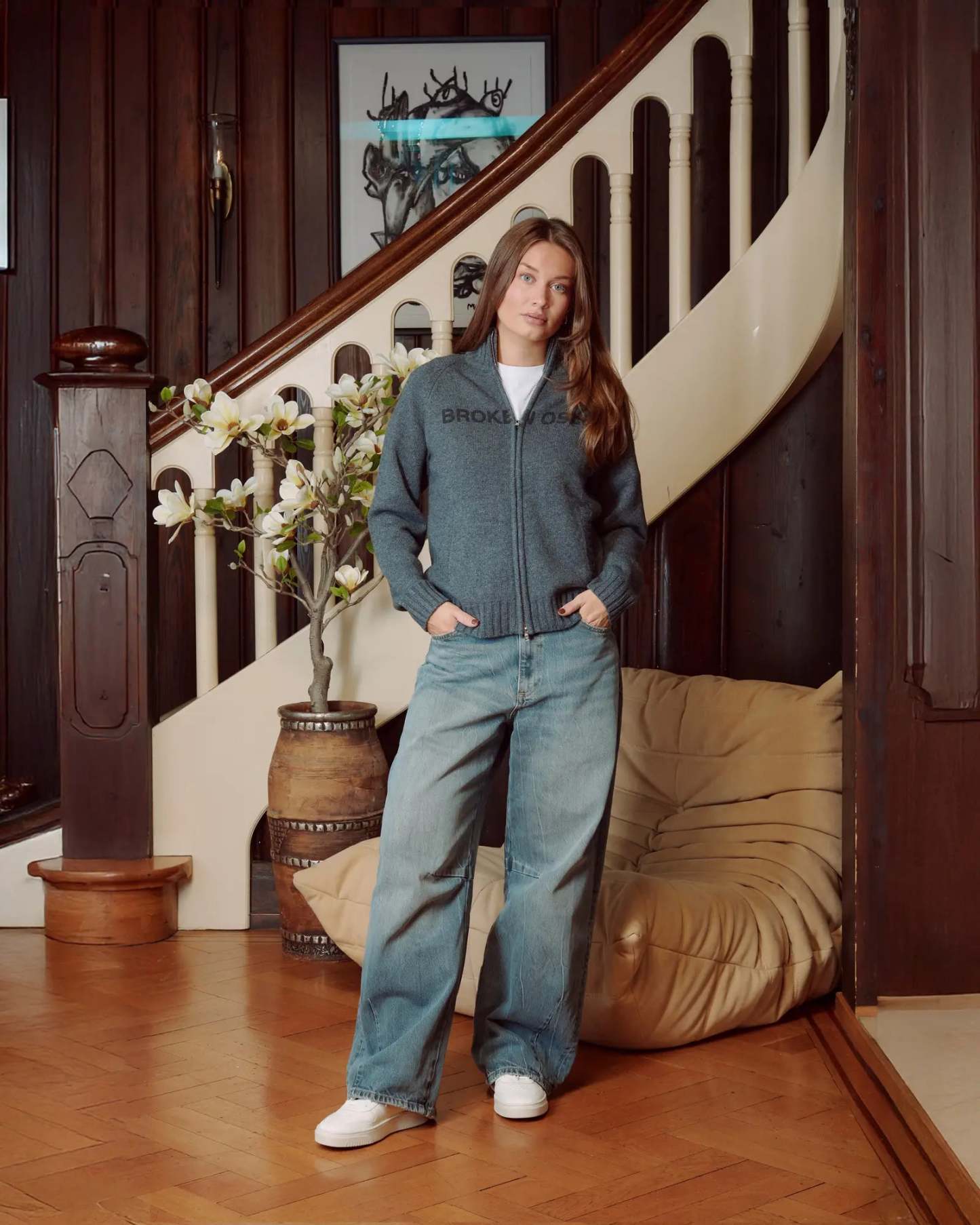 - Ribbed cuffs and hem