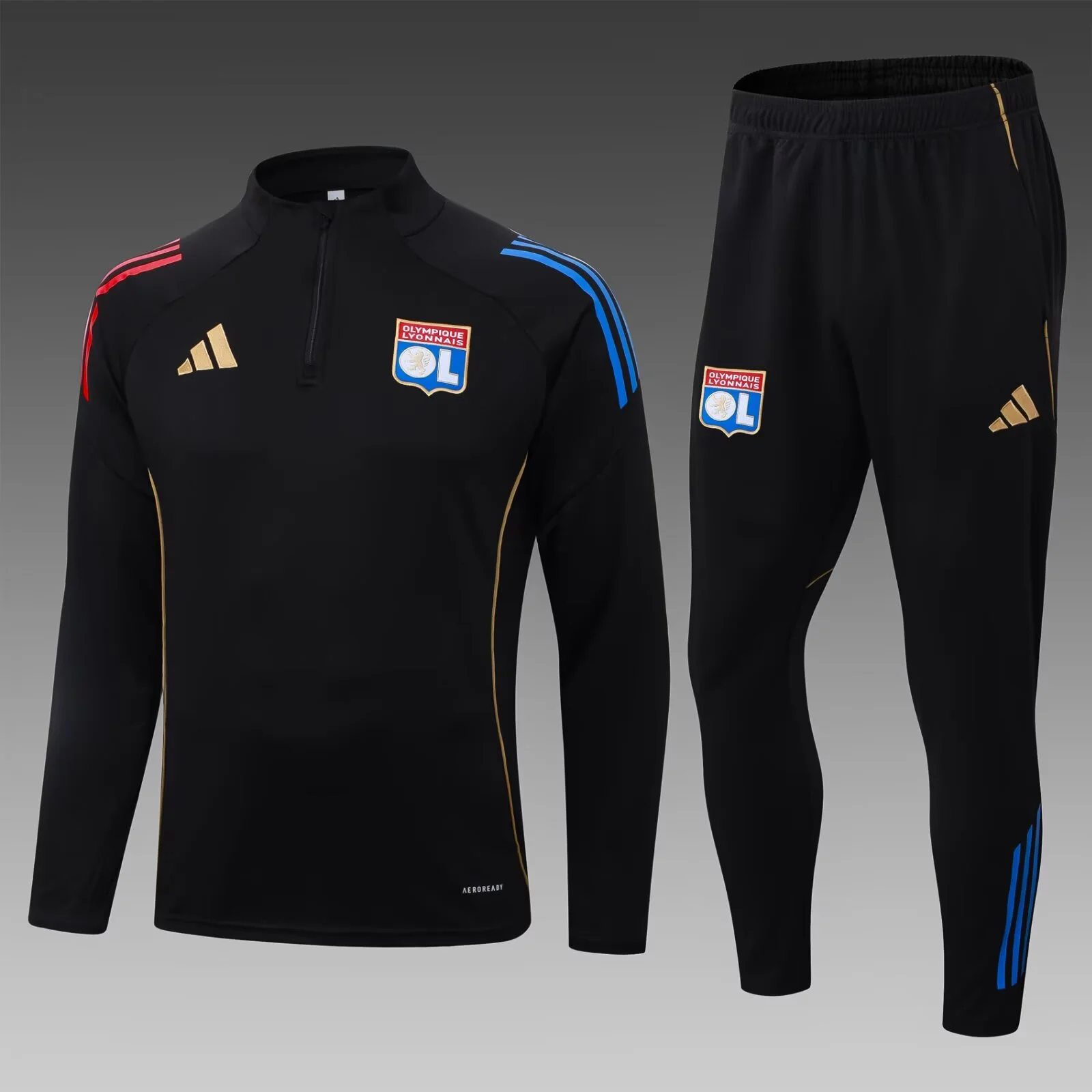 2025/2026 Lyon Half-Pull Training Suit Black Football Jersey Set 1:1 Thai Quality