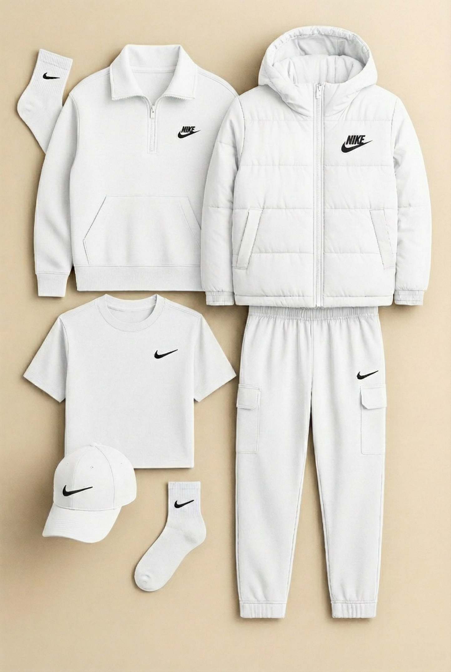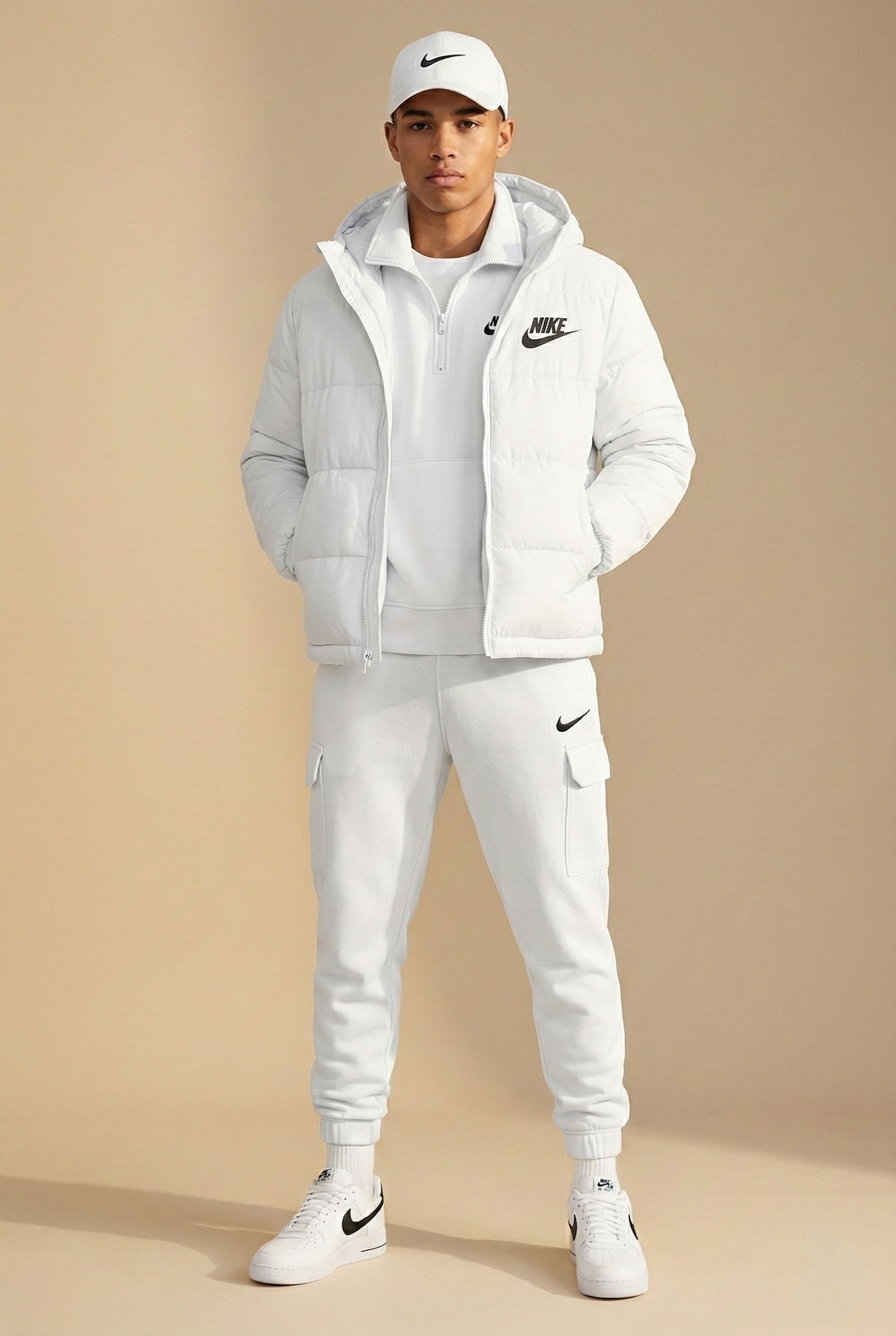 Redéfinissez l'allure urbaine avec L'Intemporel, un ensemble coordonné qui mise sur la pureté des lignes et une fonctionnalité absolue. Cet écosystème vestimentaire joue la carte du "layering" parfait : la doudoune matelassée offre une protection thermique supérieure, tandis que le duo sweat demi-zip et t-shirt assure une transition fluide entre l'extérieur et l'intérieur. Le pantalon cargo, structuré et pratique, s'associe aux accessoires pour créer une silhouette lumineuse et résolument moderne.