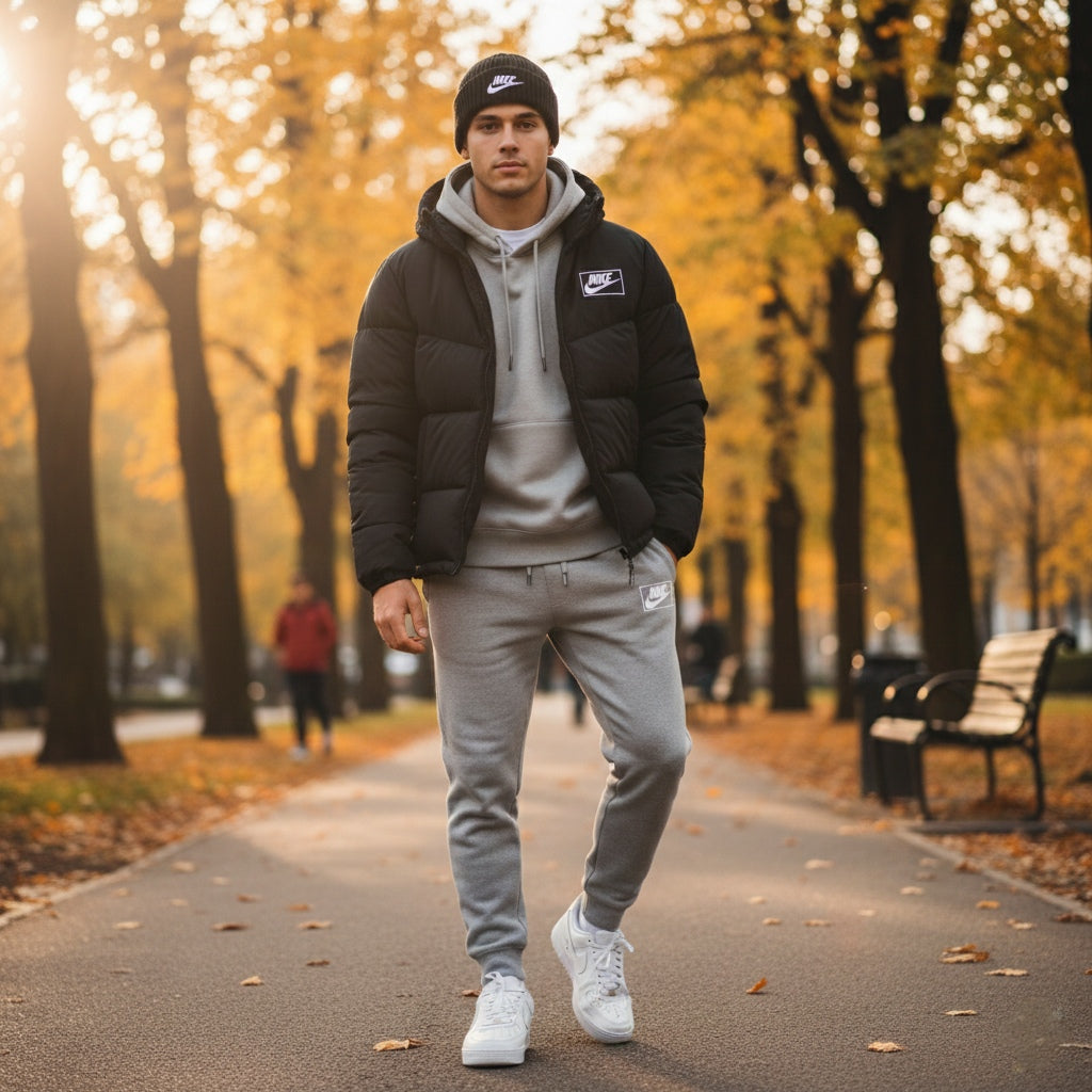 Un look essentiel et versatile, parfait pour la vie quotidienne, les loisirs ou pour un style streetwear minimaliste et soigné. L'harmonie des tons crée un contraste intemporel qui s'adapte à toutes les situations urbaines.